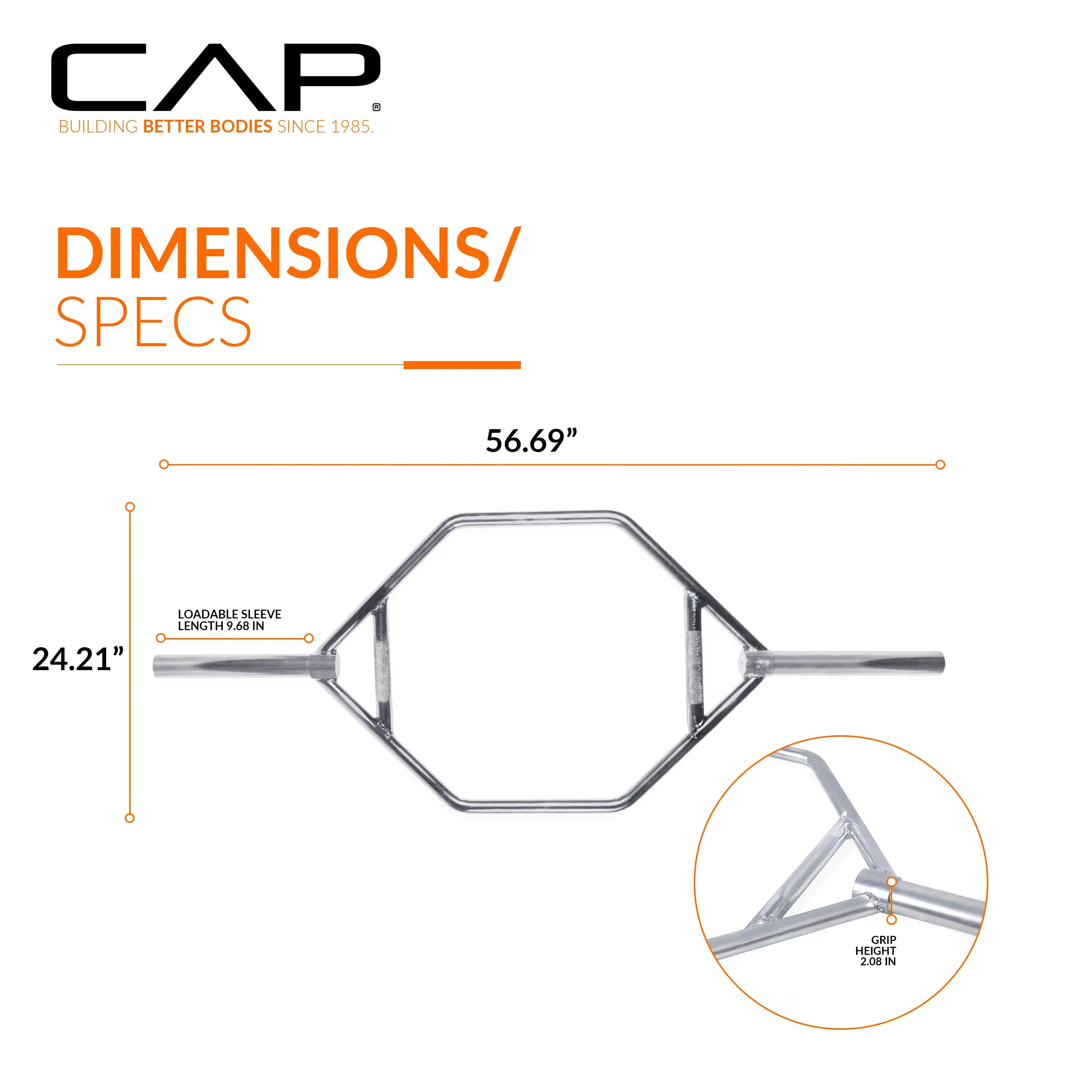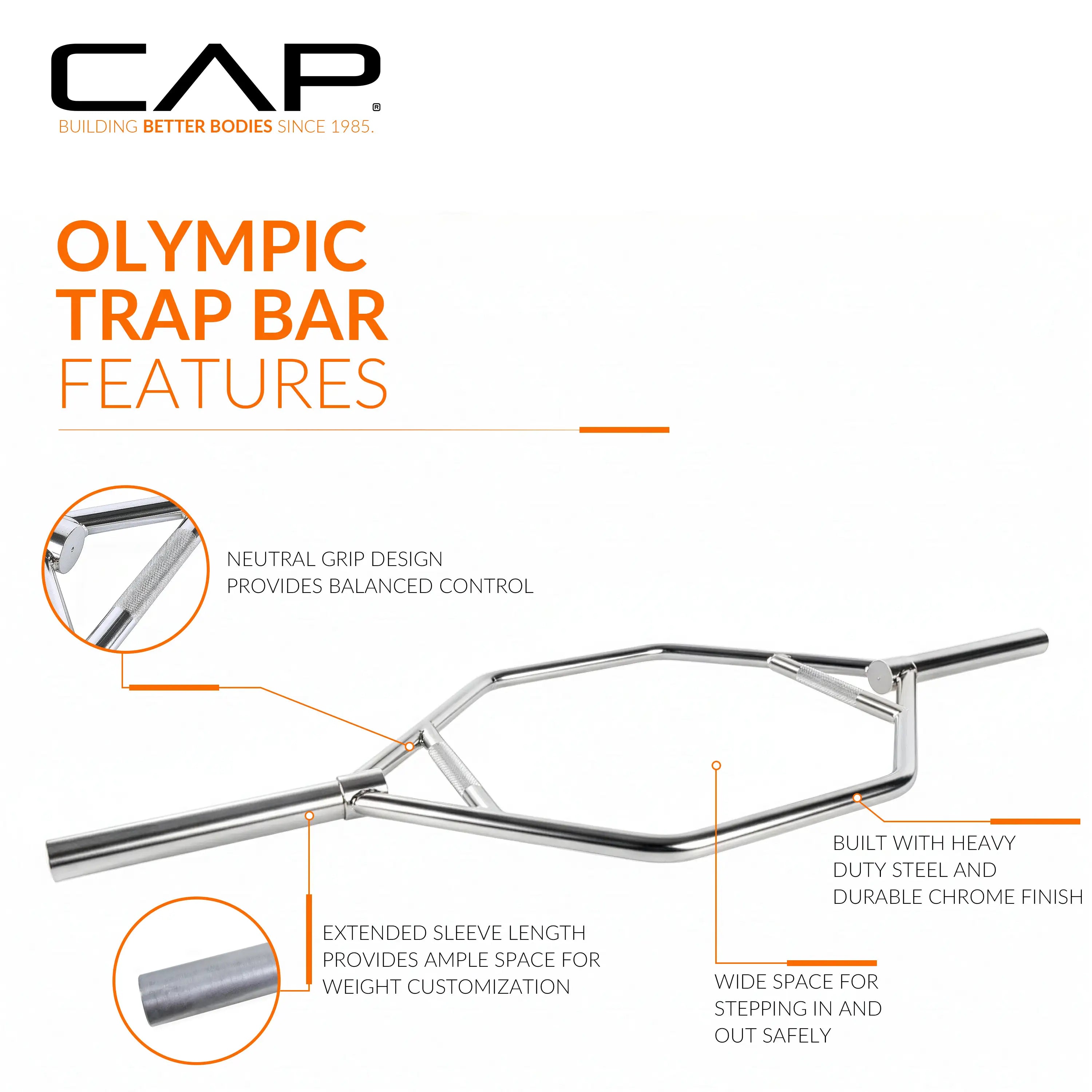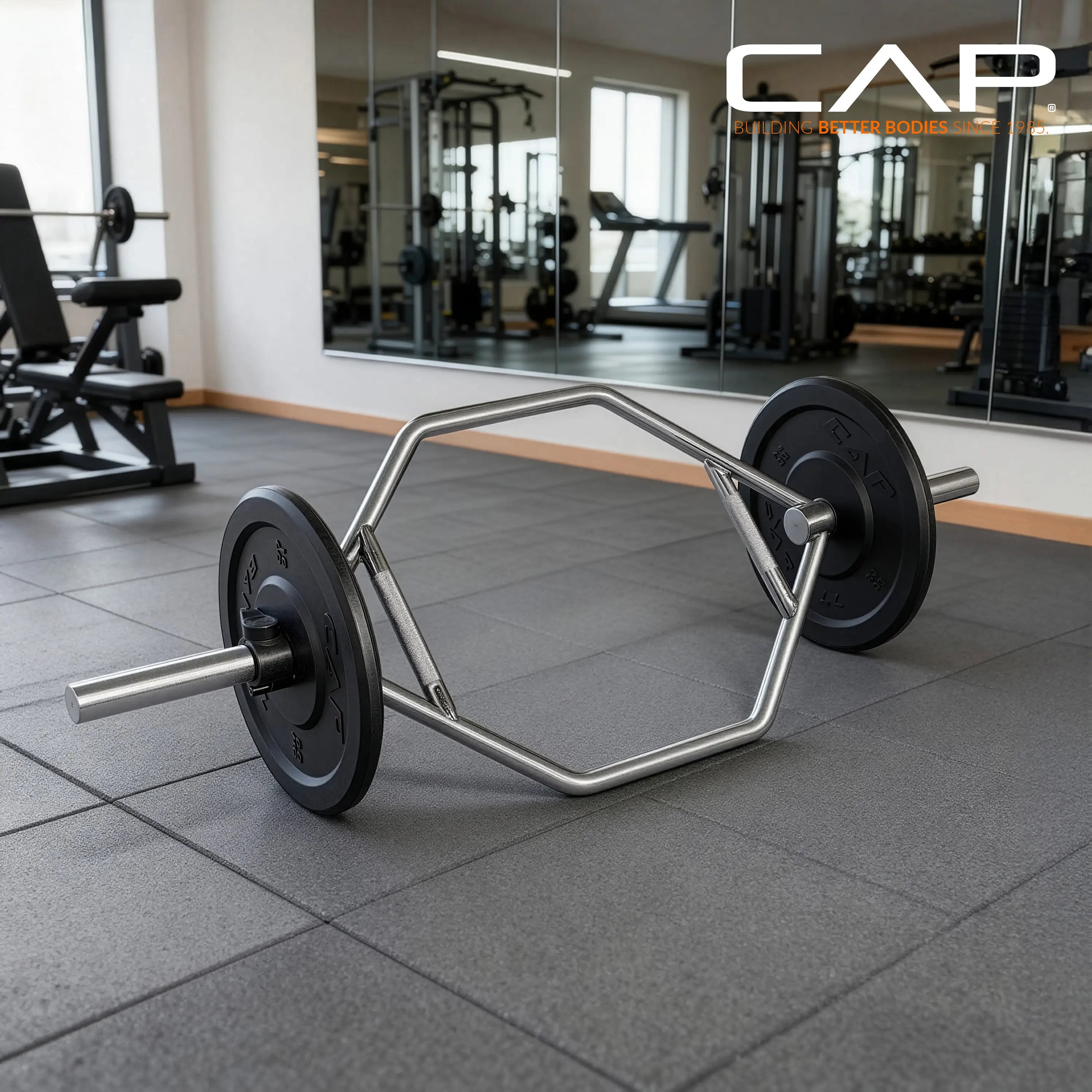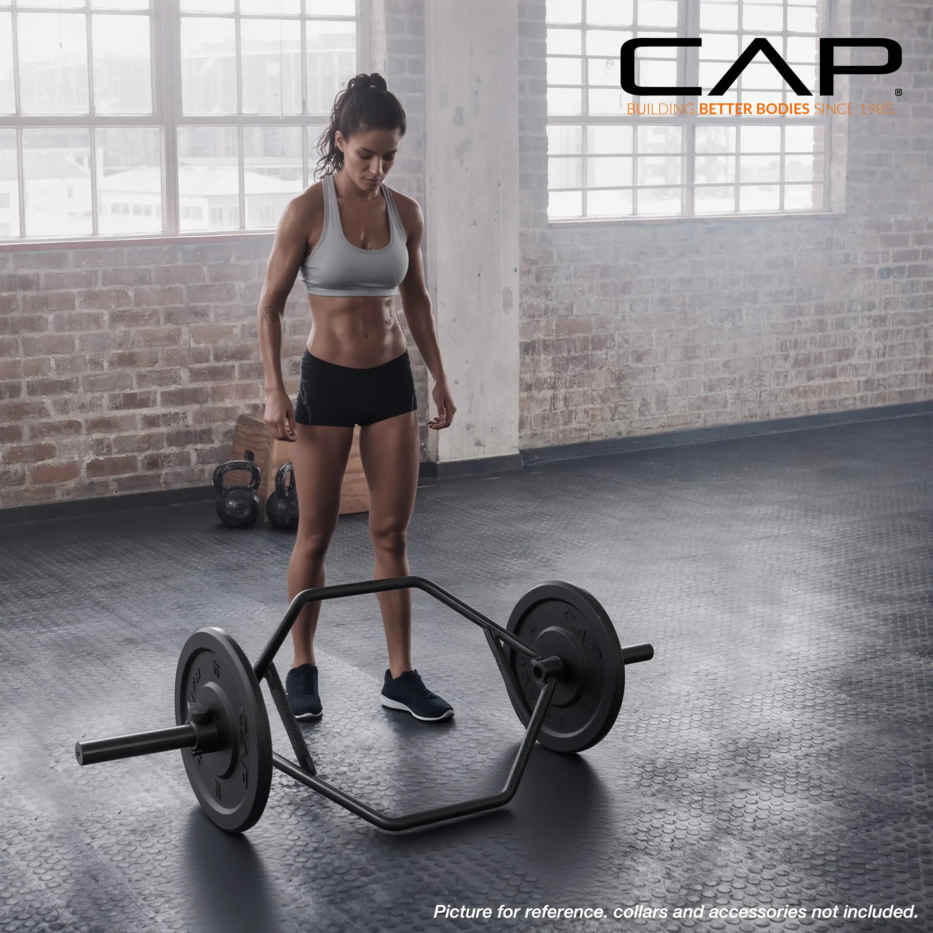 Use the CAP Olympic Trap Bar to effectively improve your deadlifts and lift more weight. With a barbell, the weight is in front of your body, but the design of the hex bar places the weight in line with your body. Using the CAP Olympic Trap Bar places a lighter load on the lumbar spine and is especially advantageous for those with lower back pain or discomfort.