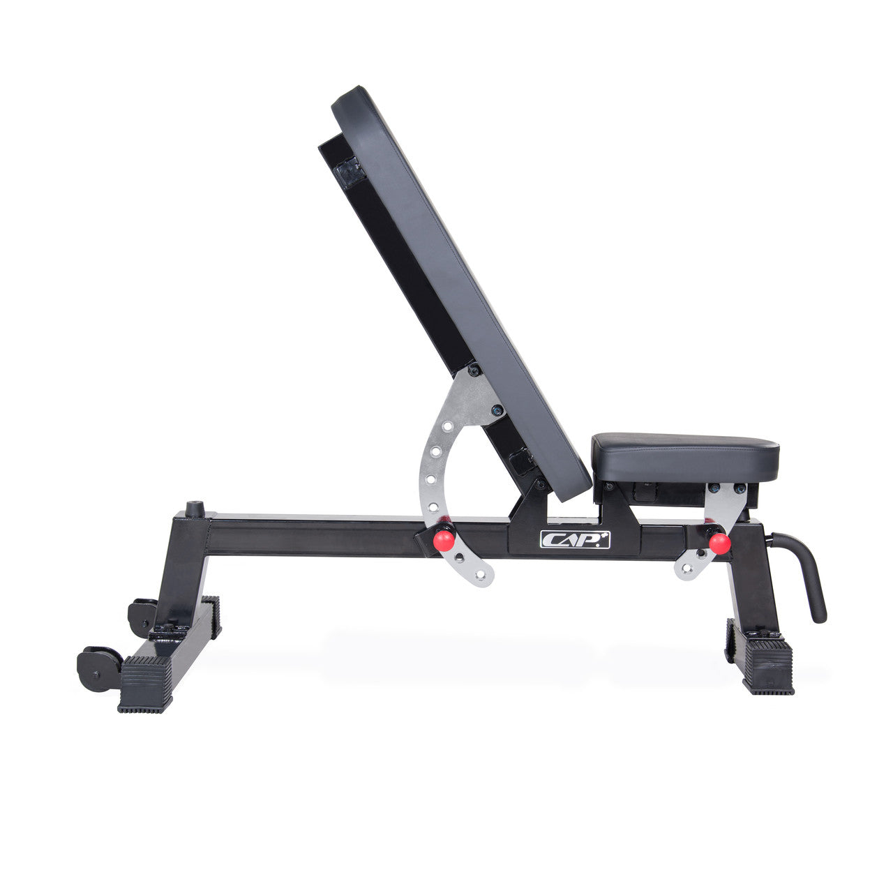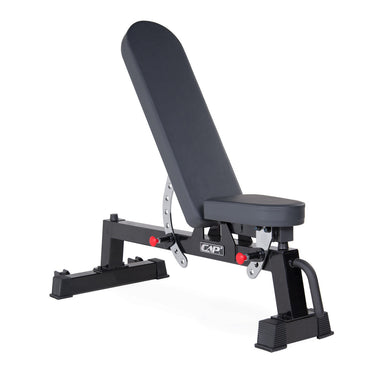 The Three-Way Utility needs no explanation. Simple? Yes. Plain? Hardly. It adjusts from 0 to 85 degrees in a flash, and can be rolled about easily with one hand. Look no further for a bench that sets the standard. Even the seat locks into position for incline work. What are you training? Chest, shoulders, arms, or back? Take a seat on the Three-Way Utility for all this and more.