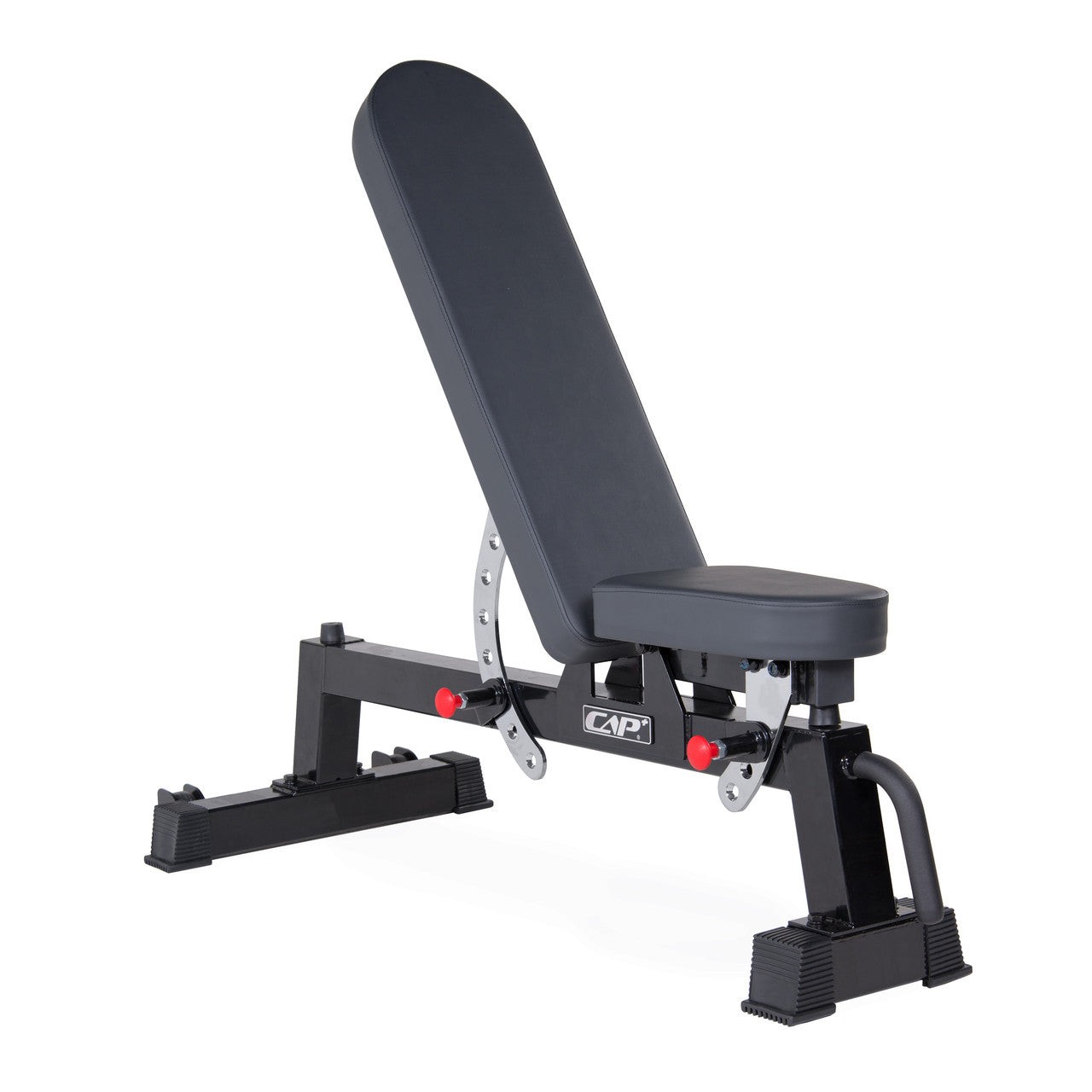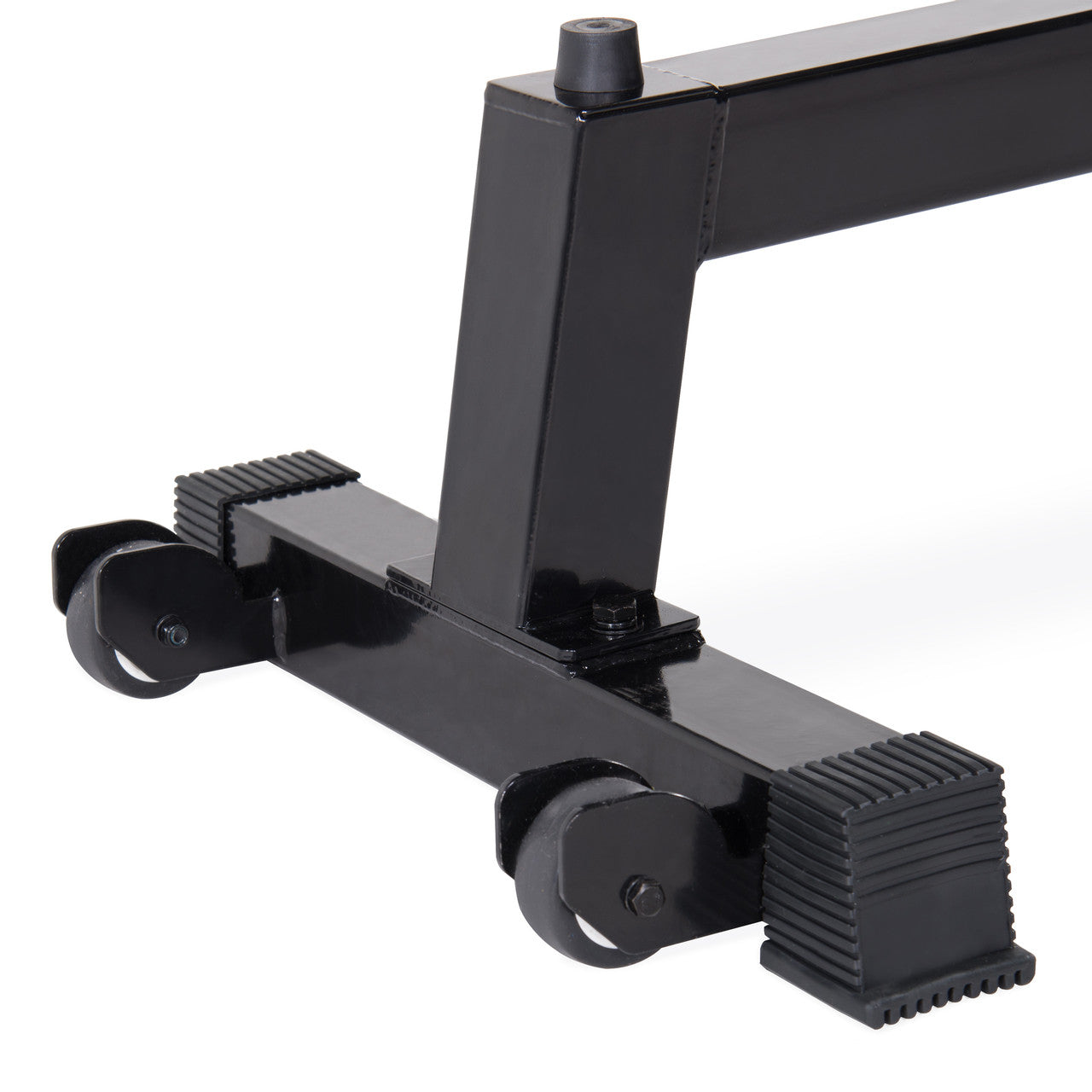Features include 3Γ—3-inch, 11 gauge all steel frame with chrome plated 3/8-inch-thick pop pin plates! Pads are a densely padded 3 inches thick and 10 inches in width – just right to not get in the way of your shoulder blades for press and fly work. Pad height from the floor in the horizontal position is 18 inches. A pair of wheels and a foam rubber grip handle are standard on this item for quick relocation between exercises.