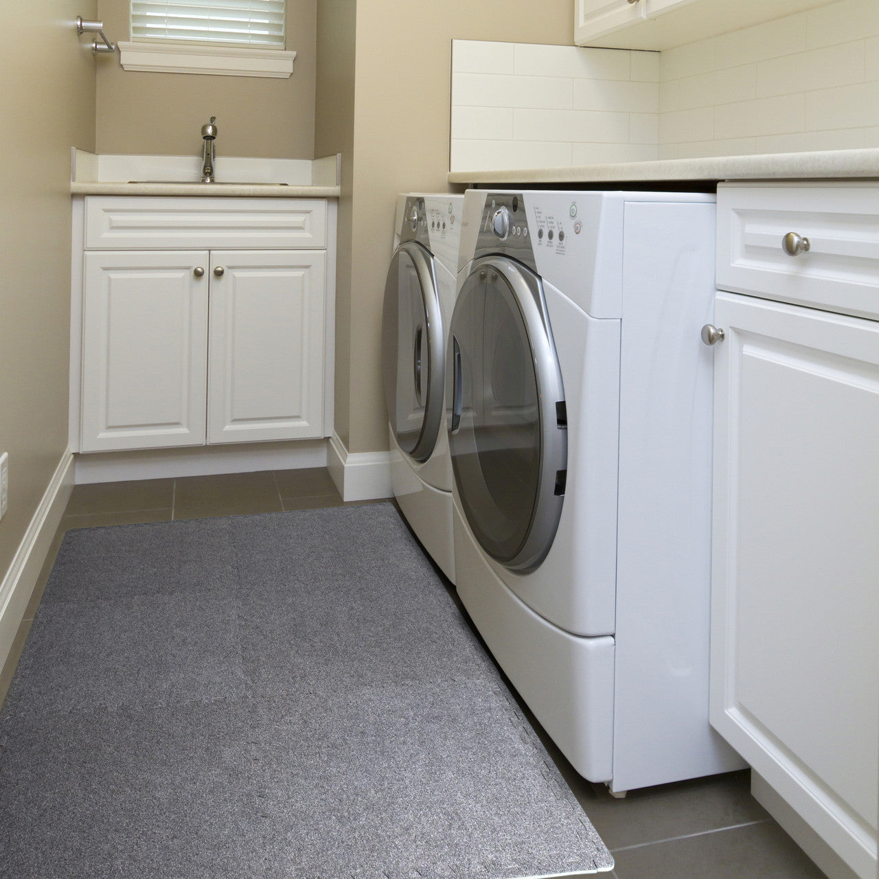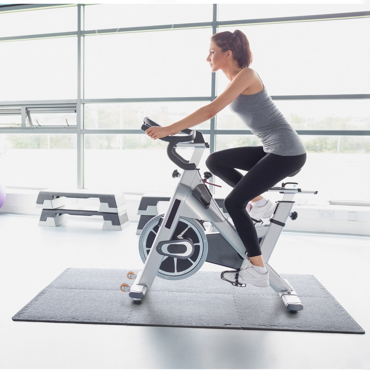 The CAP 6-Piece Foam Tile Flooring with Carpet Top is meant to provide sufficient cushioning to hard floor surfaces to protect floors and reduce the risk of injury during a workout. While being easy to clean and maintain, it is also durable enough to withstand long-term use. The EVA material of this workout floor mat ensures that your workout area remains odor free. It sports a puzzle design to give your flooring a unique, finished look.