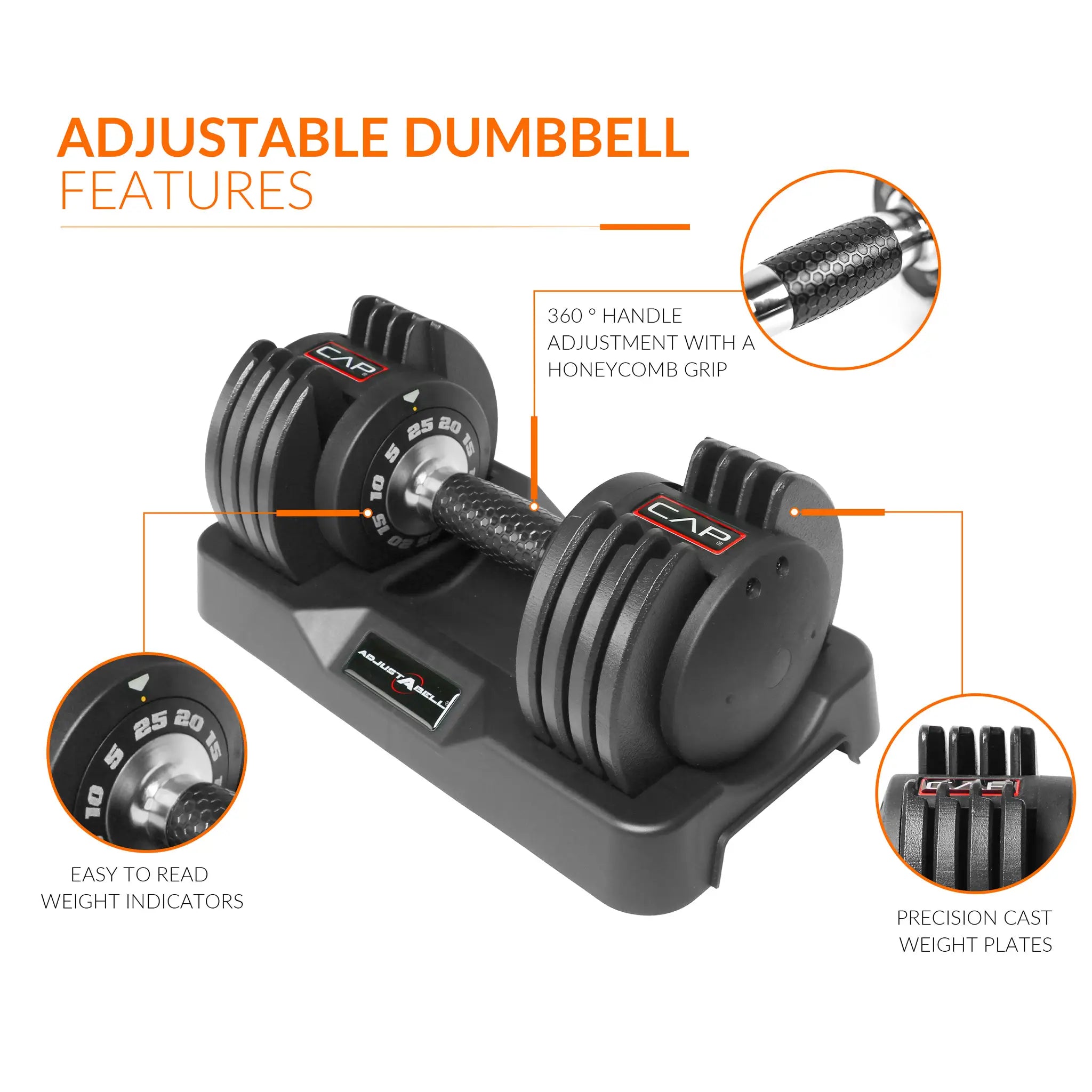 CAP 25-lb Pair of Adjustabell™ Dumbbells with Contoured Full-Rotation Handle – Compact, Versatile, and Ready for Every Workout