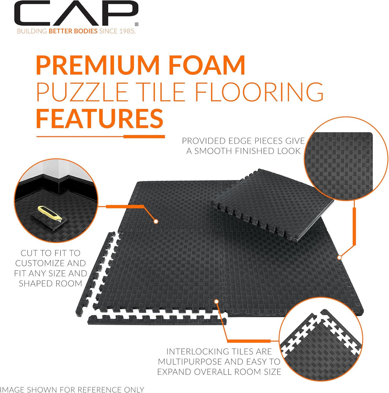 Elevate your workout experience with CAP Barbell’s Exercise Puzzle Mats, the perfect addition to any home gym or fitness space. Our premium foam mats feature an innovative interlocking design, making them easy to assemble and customize to fit any area.