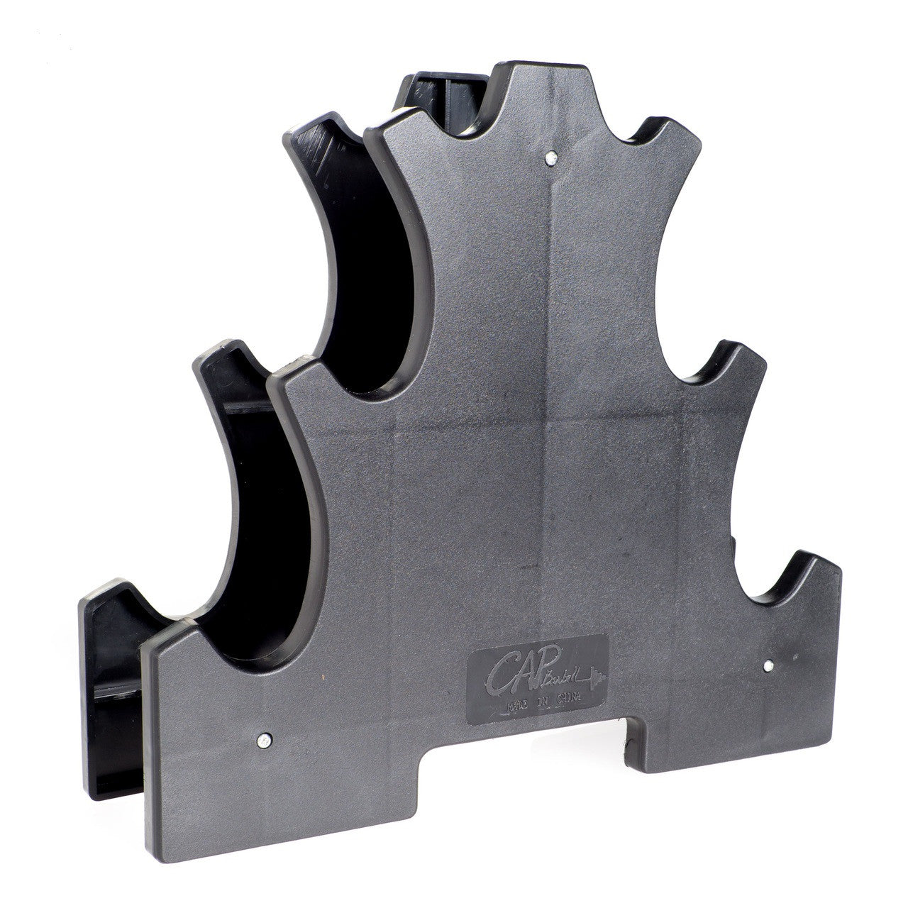 This versatile dumbbell rack can be used to store up to 30-pounds of weights between workouts (pairs of 10-pound weights or less). Assembly requires a Phillips head screwdriver.