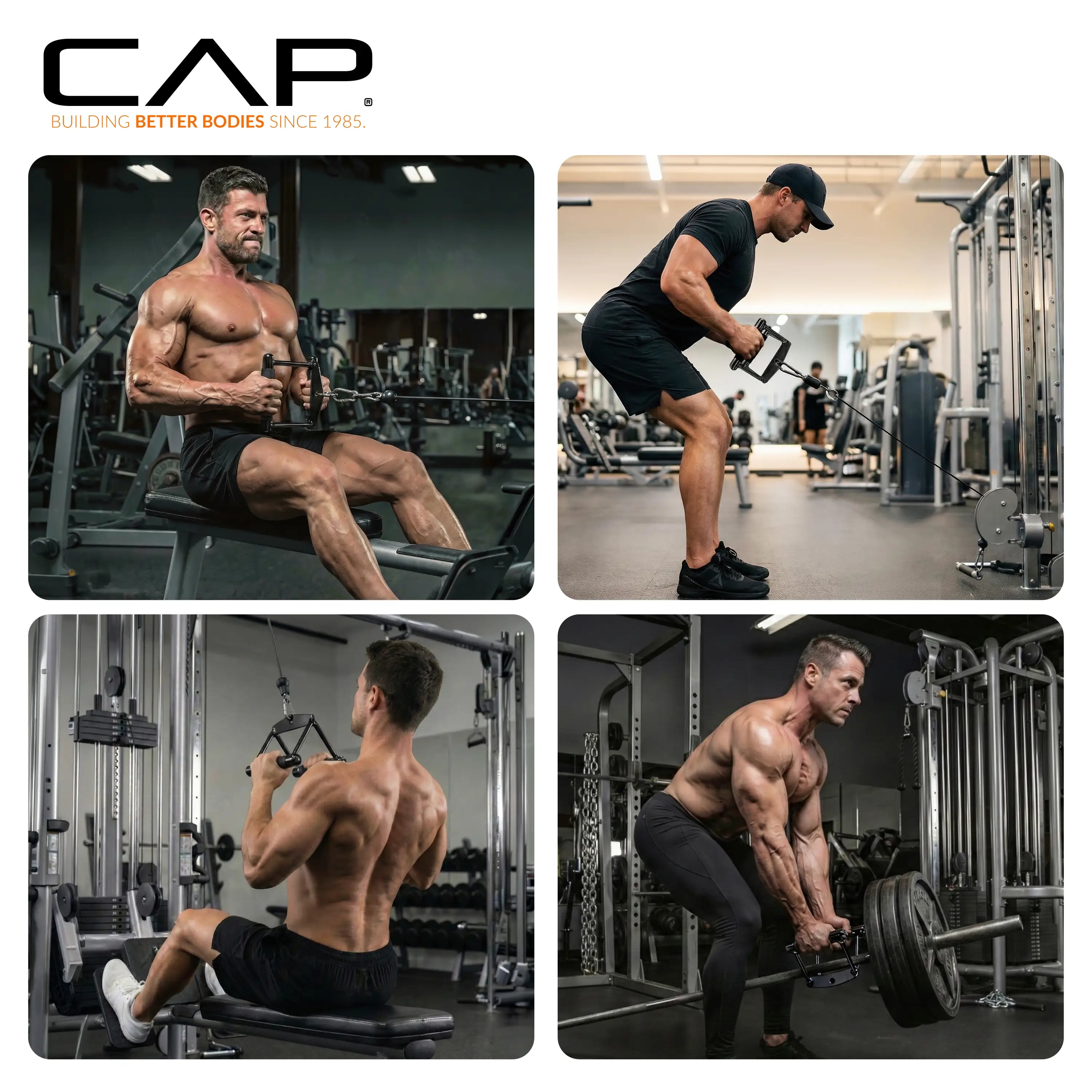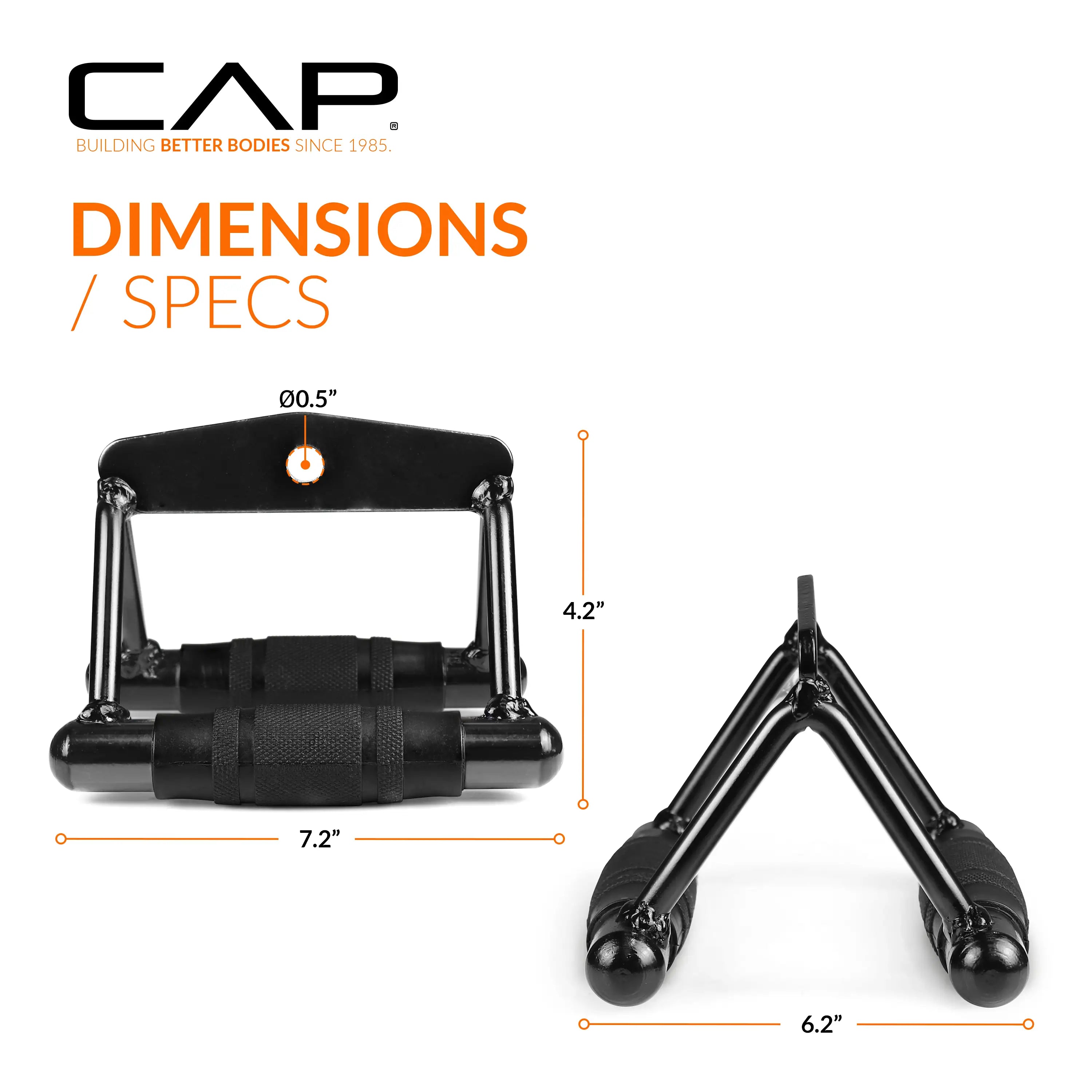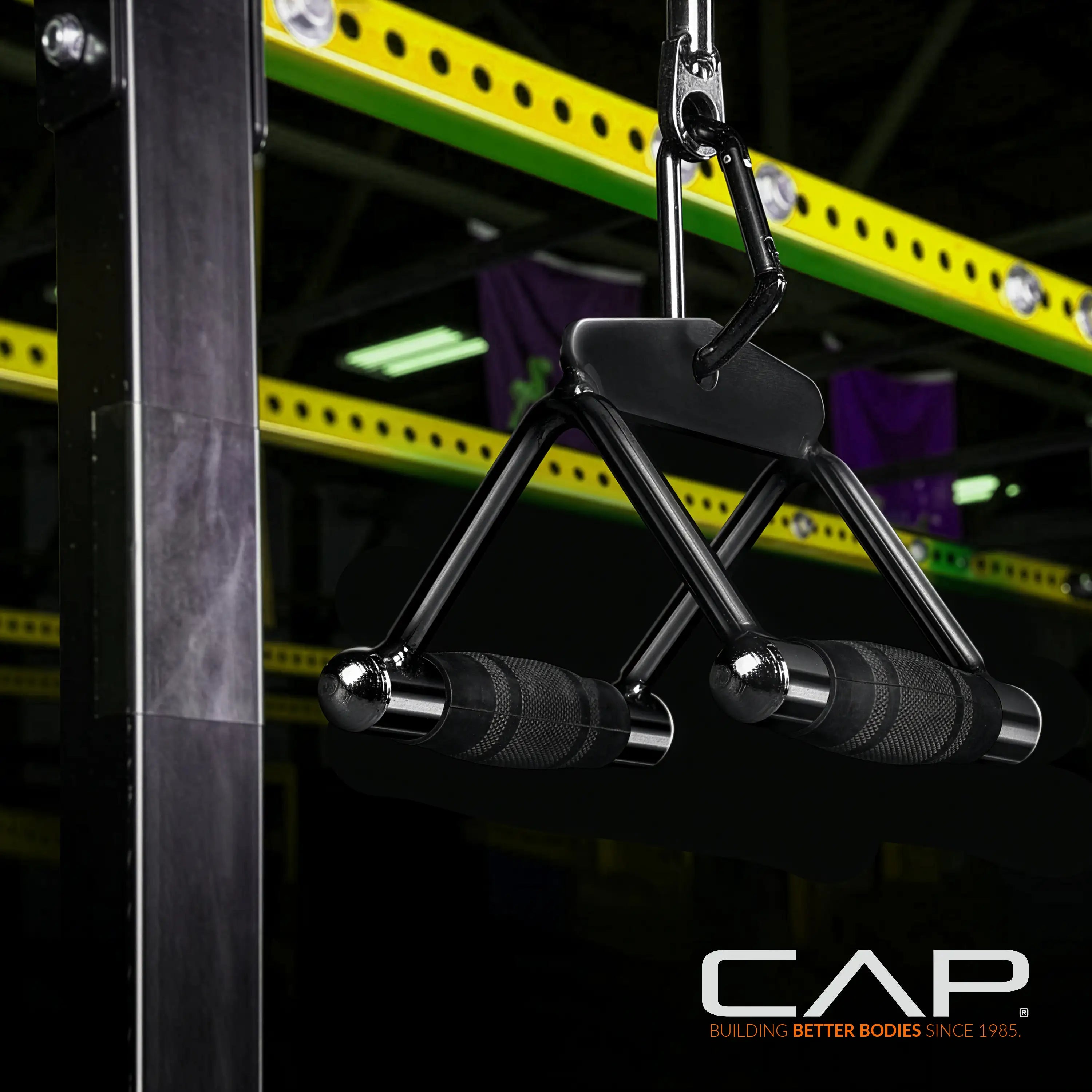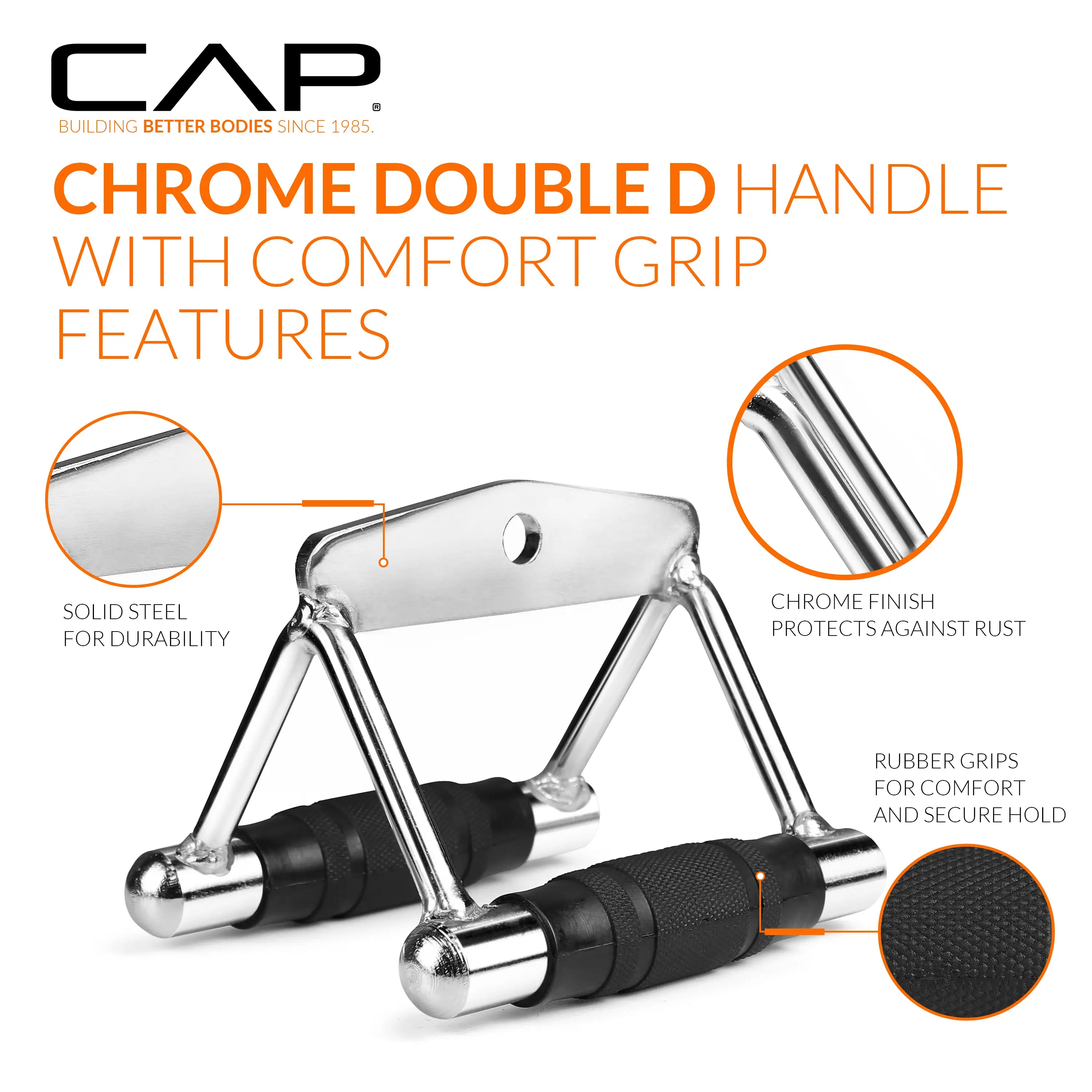 The CAP Rubber Grip Double D handle, constructed of solid steel with rubber hand grips, was designed for low row and upright row exercises. This bar offers better gripping power and is chrome plated for a high-end look. Attach this CAP Double D-Handle to your home gym and start toning those back muscles.